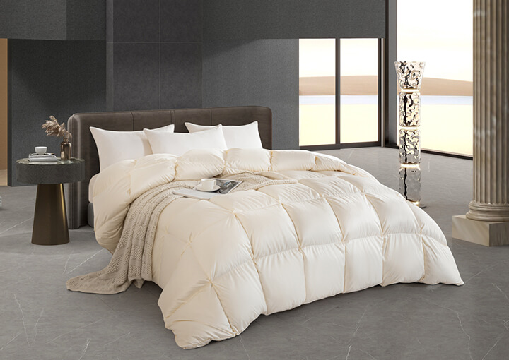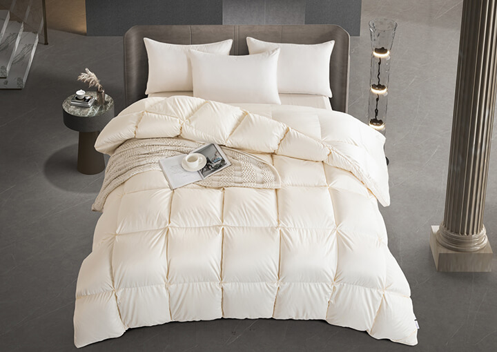 面包格加立衬设计,立体边双绳工艺,外加高达95%的充绒比例,让每个格子都饱满到这个程度,美观又有效地保留身体的热量,品质感拉满,满足您对羽绒被的需求。